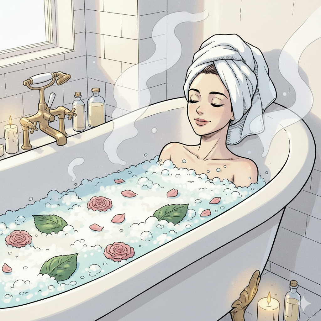 お風呂は、心と体をリセットする貴重な時間。ぬるめのお湯に10〜15分浸かるだけで、血流が良くなり疲れが取れやすくなります。お気に入りの香りの入浴剤を使えば、リラックス効果もアップします。