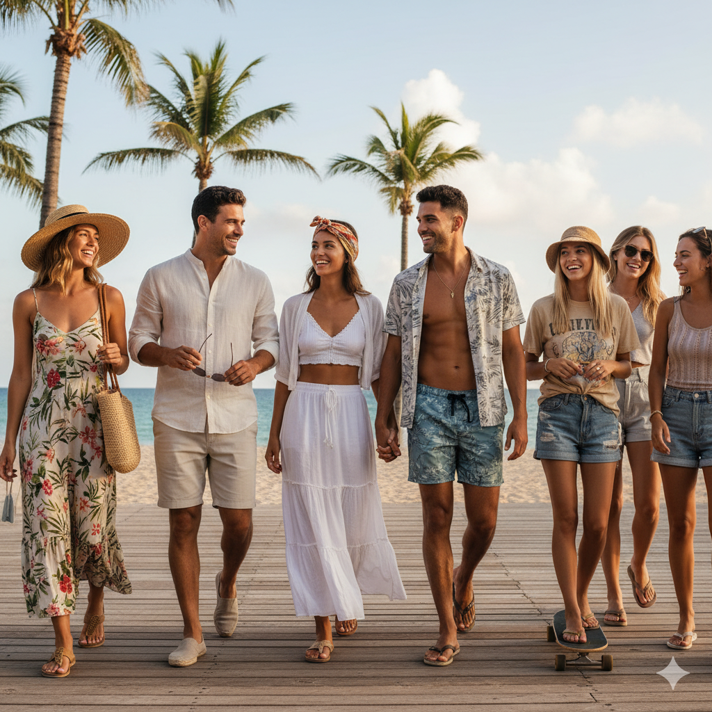 アウトドアや旅行の季節には、動きやすさと快適さを意識しましょう。吸汗速乾素材のTシャツやショートパンツ、軽量リュックを組み合わせれば、アクティブな一日も快適に過ごせます。鮮やかなカラーや柄物を取り入れると、写真映えも抜群。帽子やサングラスで日差しをカットしつつ、おしゃれ度もアップさせましょう。