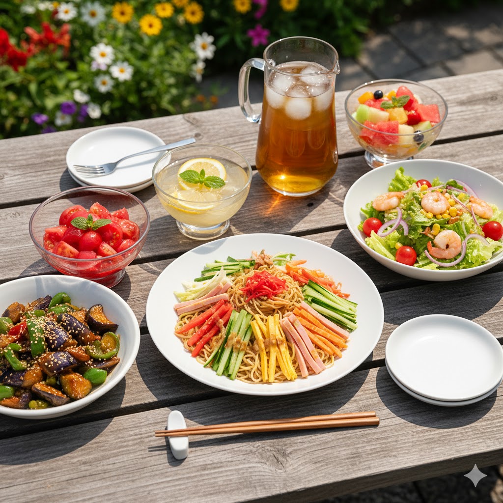 例えば、トマトとモッツァレラチーズのカプレーゼは、火を使わずに作れる簡単でおしゃれな一品。きゅうりの酢の物や冷奴は、食欲が落ちる日にも食べやすく、疲労回復にも役立ちます。スタミナをつけたいときには、にんにくやしょうがを使った料理を取り入れると効果的。豚しゃぶサラダや冷やし中華なども、夏にぴったりのバランス食です。