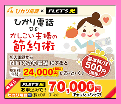 今ならひかり回線+ひかり電話のお申込みで最大70,000円キャッシュバックが受け取れる
